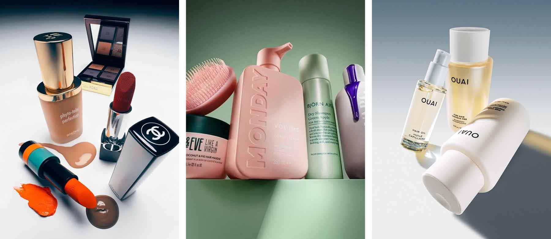 Macrolenzen tussen 90–105mm blijven de favoriet in de branche — onmisbaar voor textuur en detail, van matte crèmes tot glanzend glas.